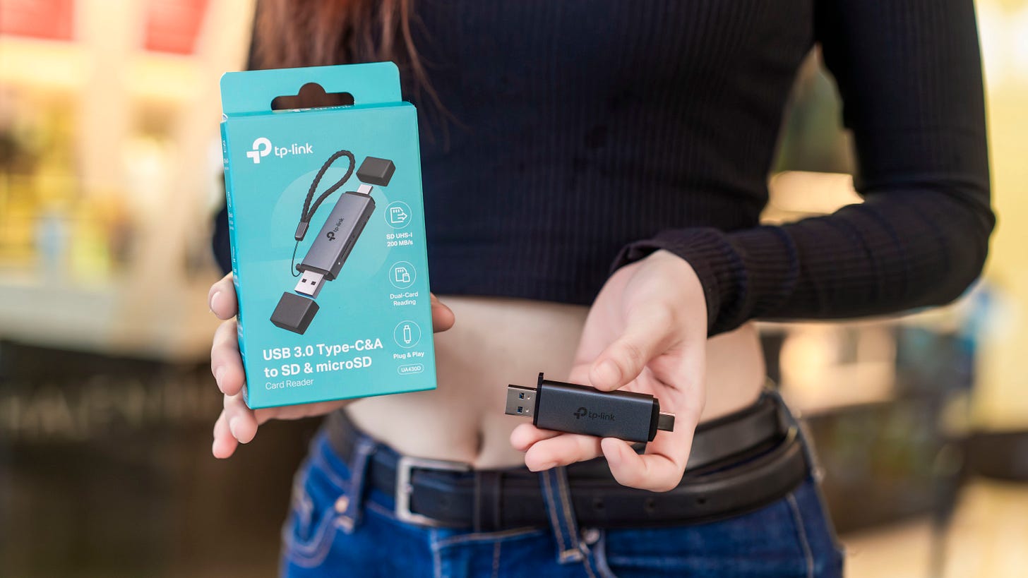 TP-Link UA430D không chỉ là đầu đọc thẻ, mà em nó là cầu nối tốc độ cao giữa thiết bị quay và máy dựng. Tốc độ, sự ổn định, và khả năng tương thích cực rộng khiến nó trở thành một món đồ đáng mua với mức giá dễ tiếp cận, loanh quanh đầu đó trên dưới 200 ngàn cho bất kỳ ai làm công việc sáng tạo nội dung. Nếu bạn từng phải ngồi chờ file 4K copy chậm rì với deadline đang dí tới đít thì UA430D đích thị là mảnh ghép còn thiếu của bạn.