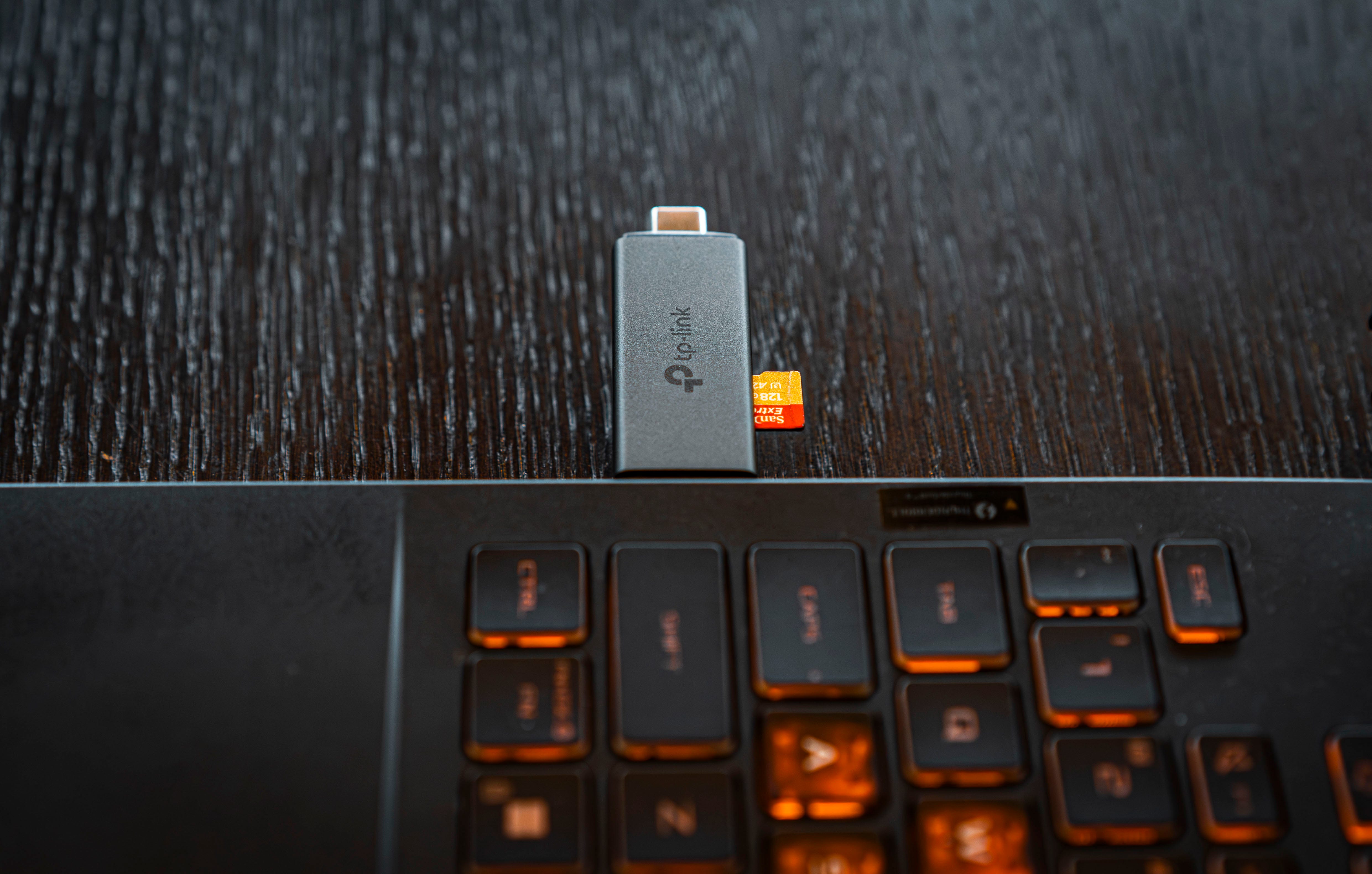 Toàn thân UA430D được bọc nhôm xám mờ với độ hoàn thiện rất ổn áp. Mình rất hay nhét em nó chung trong túi đựng thẻ nhớ, dây sạc, và adapter mỗi khi đi hành nghề. Ấy vậy mà sau gần 1 tuần, da mặt UA430D vẫn trơn tru, không xước xát rõ rệt. Rõ ràng TP-Link không “cook” món này kiểu cho có hay bắt trend, mà là một phụ kiện hướng đến những người dùng chuyên nghiệp thật sự.